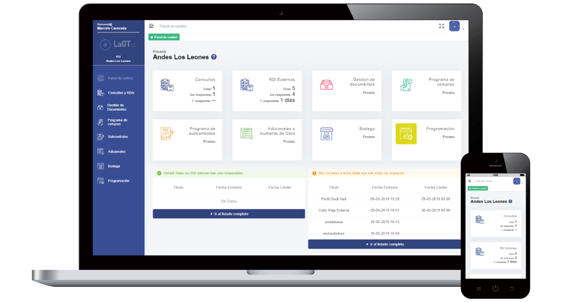 Con el panel de control de la OT, disminuyen los tiempos de trabajo de secretariado de tus profesionales aumentando el enfoque en la planificación y gestión, estas informado del proyecto en tiempo real donde quiera que necesites para un control exitoso.