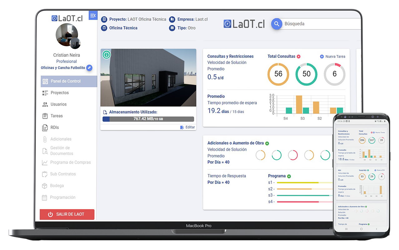 Navega por tus diferentes proyectos, visualizando en tiempo real el estado de las tareas de los equipos de obra, asigna tareas, revisa y comenta las tareas en ejecución, accede rápido y fácil a las RDIs del proyecto, manteniendo actualizado el estatus. Mejora la comunicación OT-Terreno y ayuda a detectar las restricciones de obra de manera inmediata.
